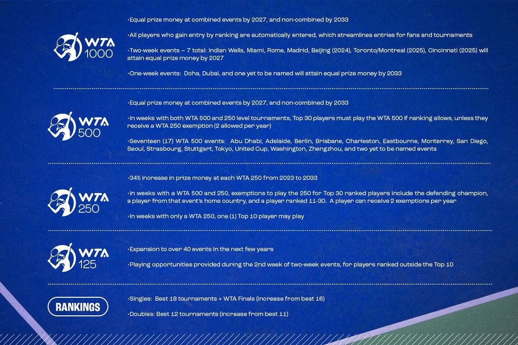 2025 Wta Tournaments WTA announces new tour calendar and pathway to equal prize money: The Abu Dhabi Open is the tournament which commences the Middle Eastern swing of tennis, which is followed by the Sunshine Doubles. The prize money and the 500 points are rewards which would attract . “BREAKING: The WTA Tour has announced that to prevent congested scheduling and matches being pushed into unplanned late-night finishes, Beatriz Haddad Maia is to be banned from all its forthcoming .